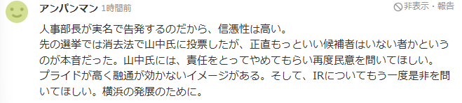 横浜市政のトップとして、今後どのような説明を行うのか。