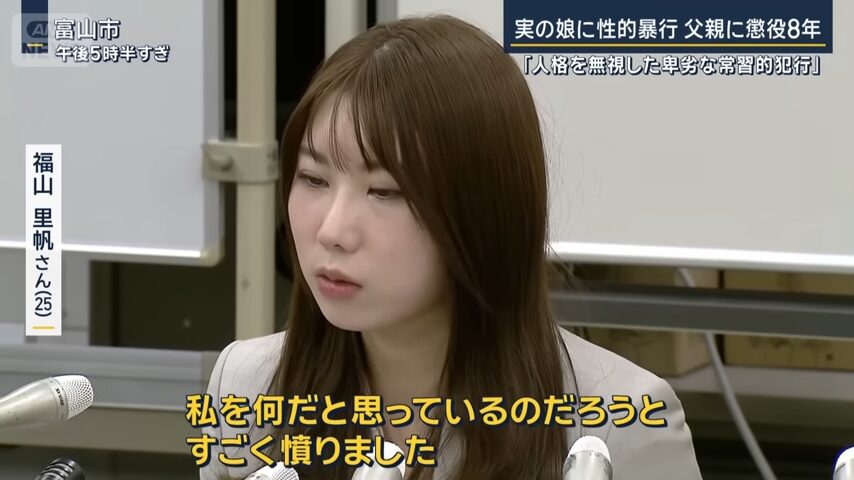2025年10月21日に富山地裁で、実の娘に対して繰り返し性的暴行を行ったとして、50代の父親に懲役8年の実刑判決が言い渡されました。