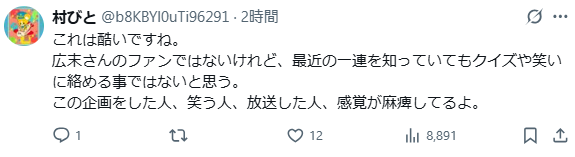 放送直後からSNSでは「今の、ちょっとやばくない?」「これはさすがに失礼では…」と話題に。