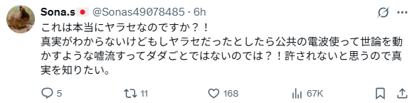 X(旧Twitter)では「真実を伝えるはずの報道でやらせは許されない」と批判が殺到。