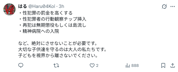 SNSでは「極刑レベル」「許せない」「なぜ今まで発覚しなかったのか」など、怒りと衝撃が広がっています。
