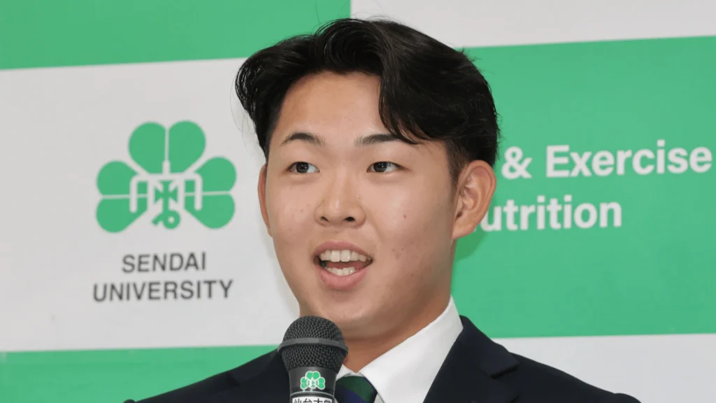 仙台大学の平川蓮は身長187㎝の大型スイッチヒッターで札幌国際情報高校から仙台大学へ進学し広島東洋カープから1位指名を受けています。