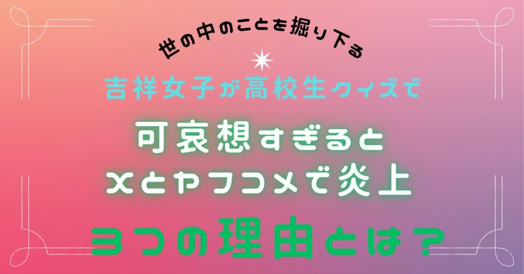 吉祥女子が高校生クイズで可哀想すぎるとXで炎上した3つの理由!