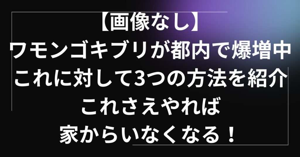 【画像なし】ワモンゴキブリが都内で大量発生!3つの対策!これさえやれば殲滅できる!