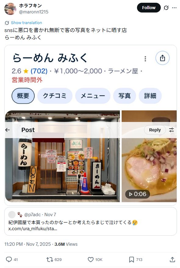 - 「らーめん みふく」が客の写真を無断晒し?とSNSで炎上