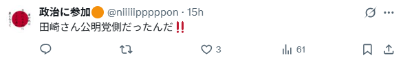 - SNS上で「田崎さんは公明党の人」といった根拠不明の投稿が拡散