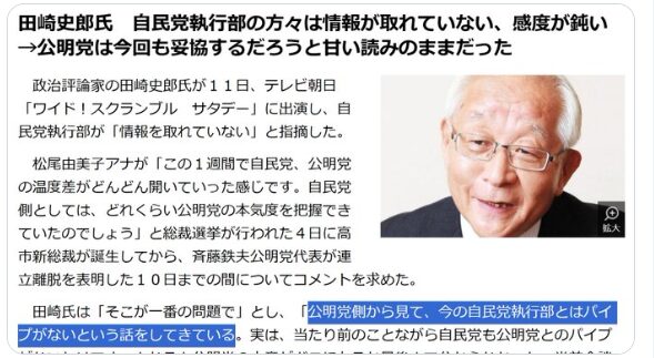 田崎史郎、また公明寄りのコメントしてる…。ほんと党員なんじゃないの?